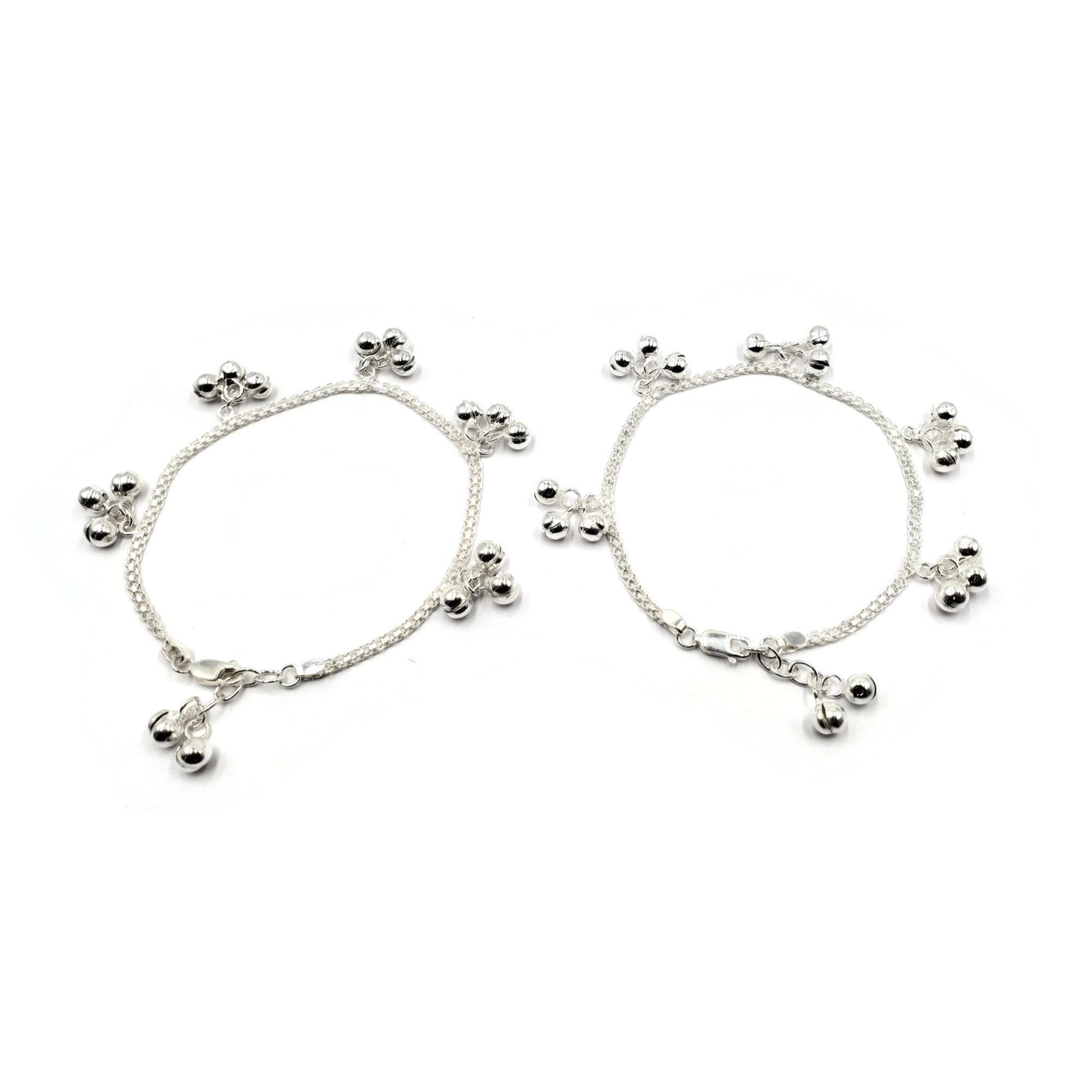 925 Sterling Silver Kids 3 Mm Mat Design Bell Anklet Style 27 Size 8 5 Inch 13 Yrs Walmart Com